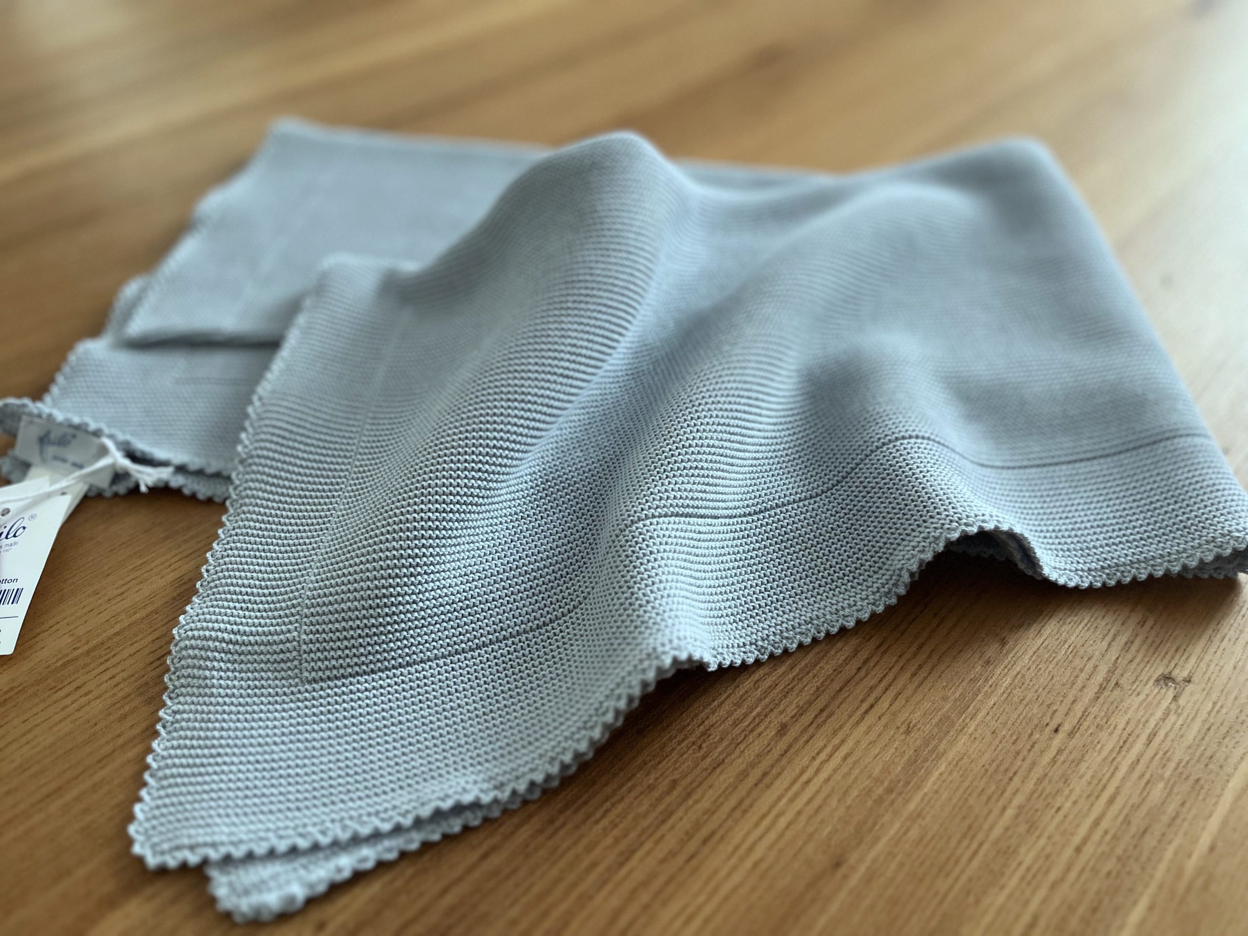 Die Baby-Strickdecke von frilo swissmade ist 82×82 cm gross und wird zu 100% in der Schweiz hergestellt.